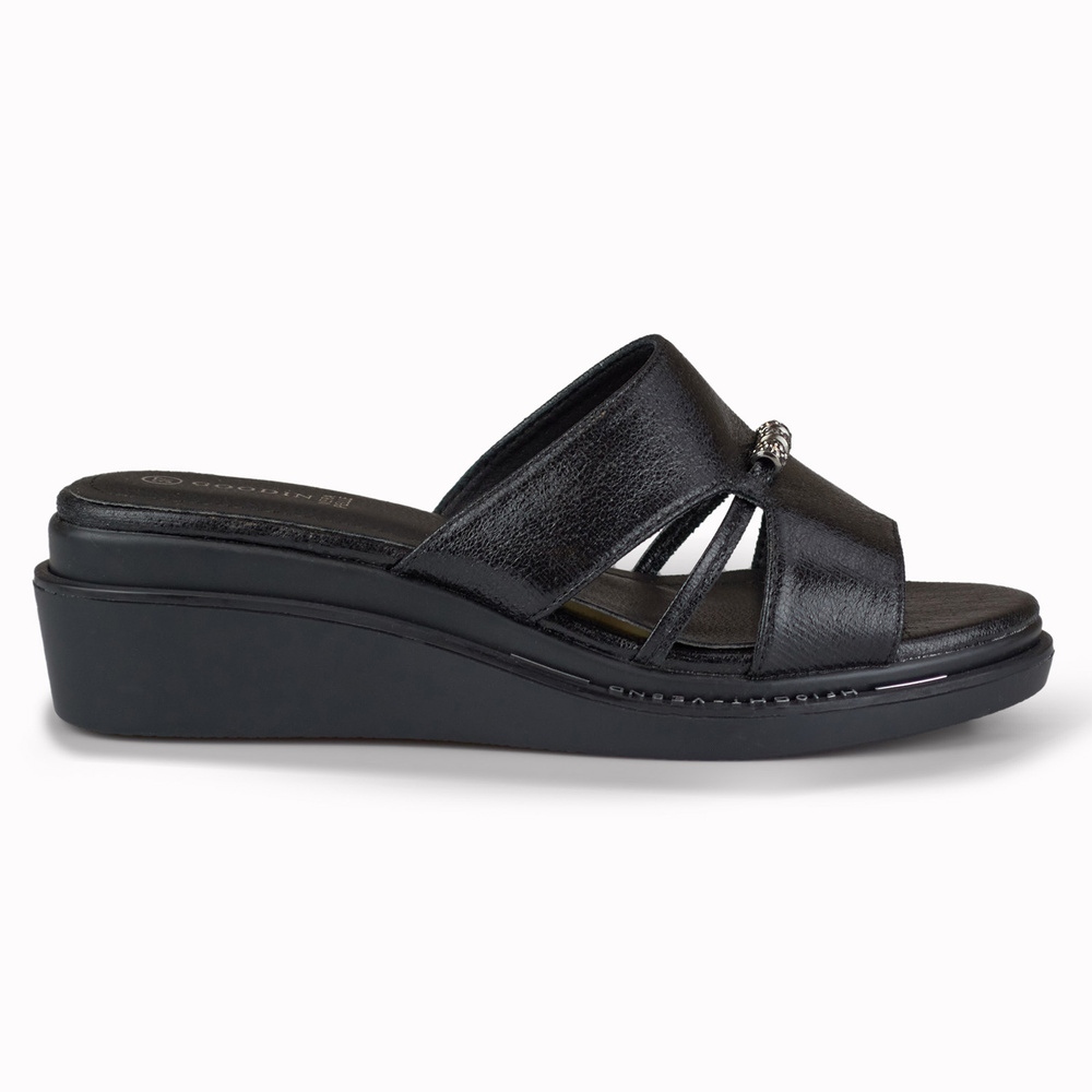 Részletek: Kényelmes, elegáns női ékpapucs fekete