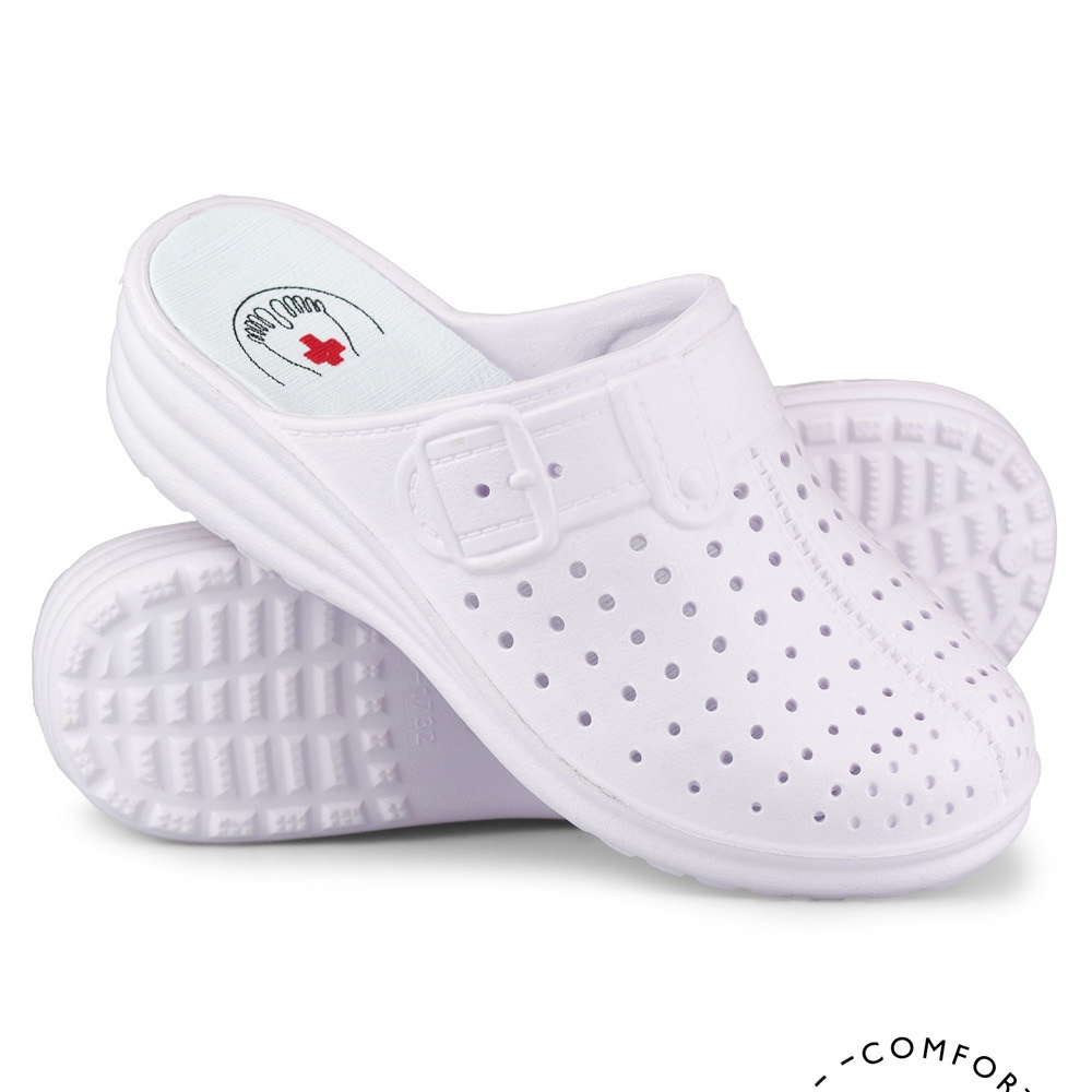 Részletek: Kényelmes, fehér színű női papucs fedett ujjakkal
