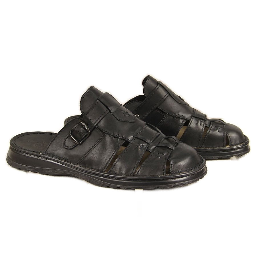 Részletek: Kényelmes fekete bőr férfi papucs Łukbut 962