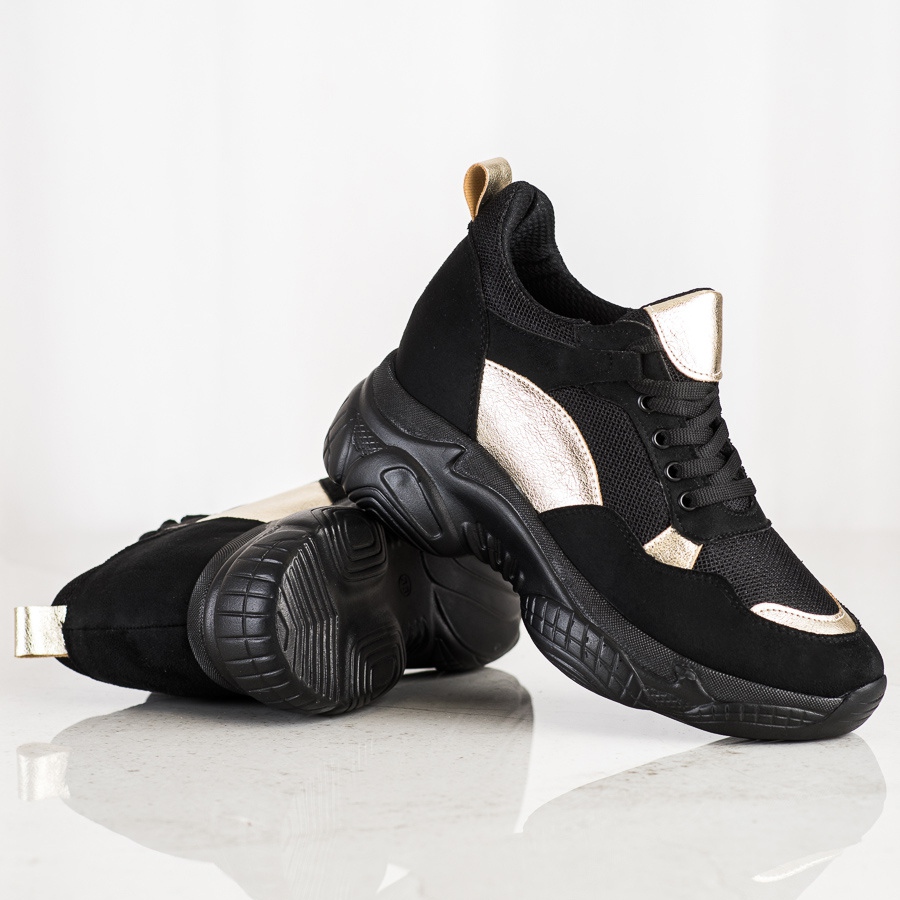 Részletek: SHELOVET Kényelmes fekete és arany cipők aranysárga