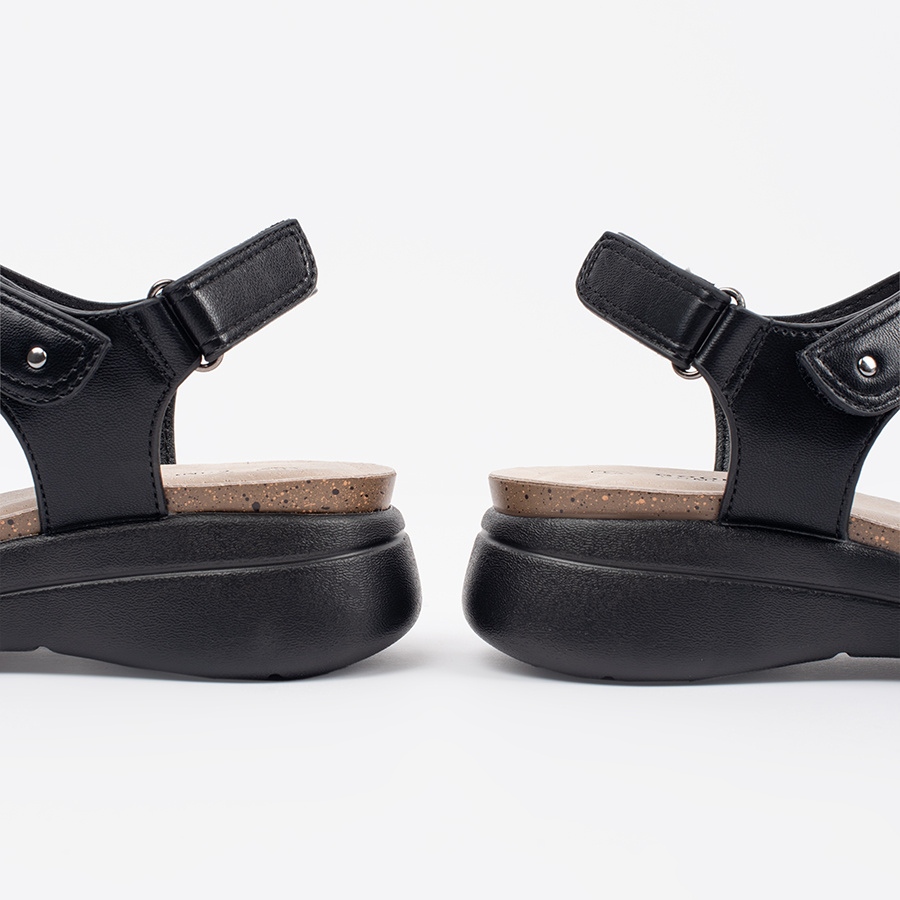 A nyitott sarok és az orr hiánya garantálja a mozgás szabadságát, és a 3,5 cm -es magas platform hangsúlyozza az ábrát, biztosítva a stabilitást. A sima műanyag talp jó tapadást biztosít a különböző felületeken, ami minden alkalommal tökéletes választást jelent. A szandált gyakorlati tépőzárral vannak rögzítve, ami rendkívül egyszerűvé teszi őket.