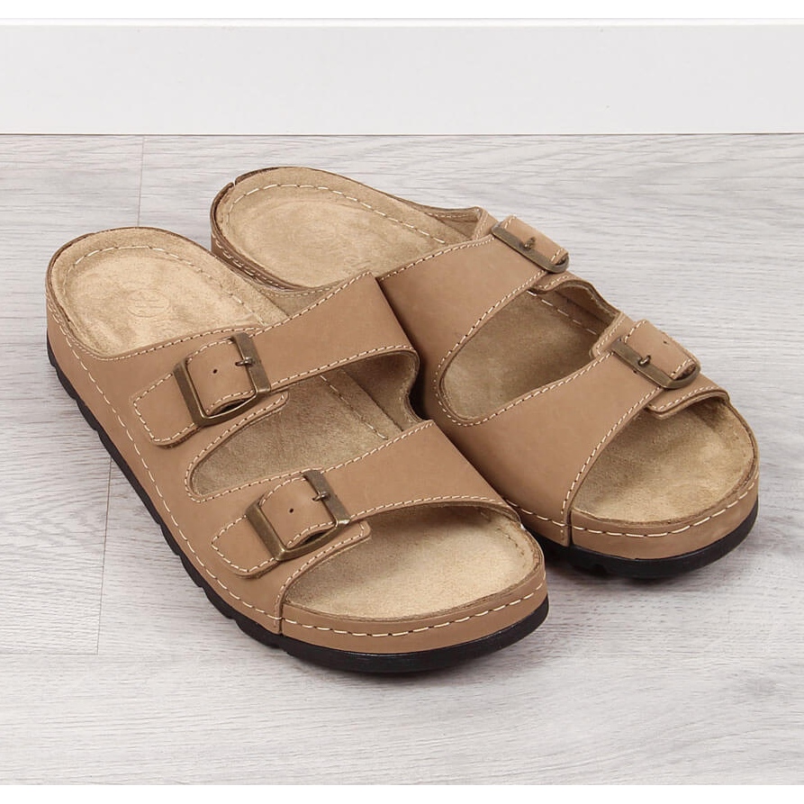 Részletek: Kényelmes férfi bőr papucs bézs Helios 813