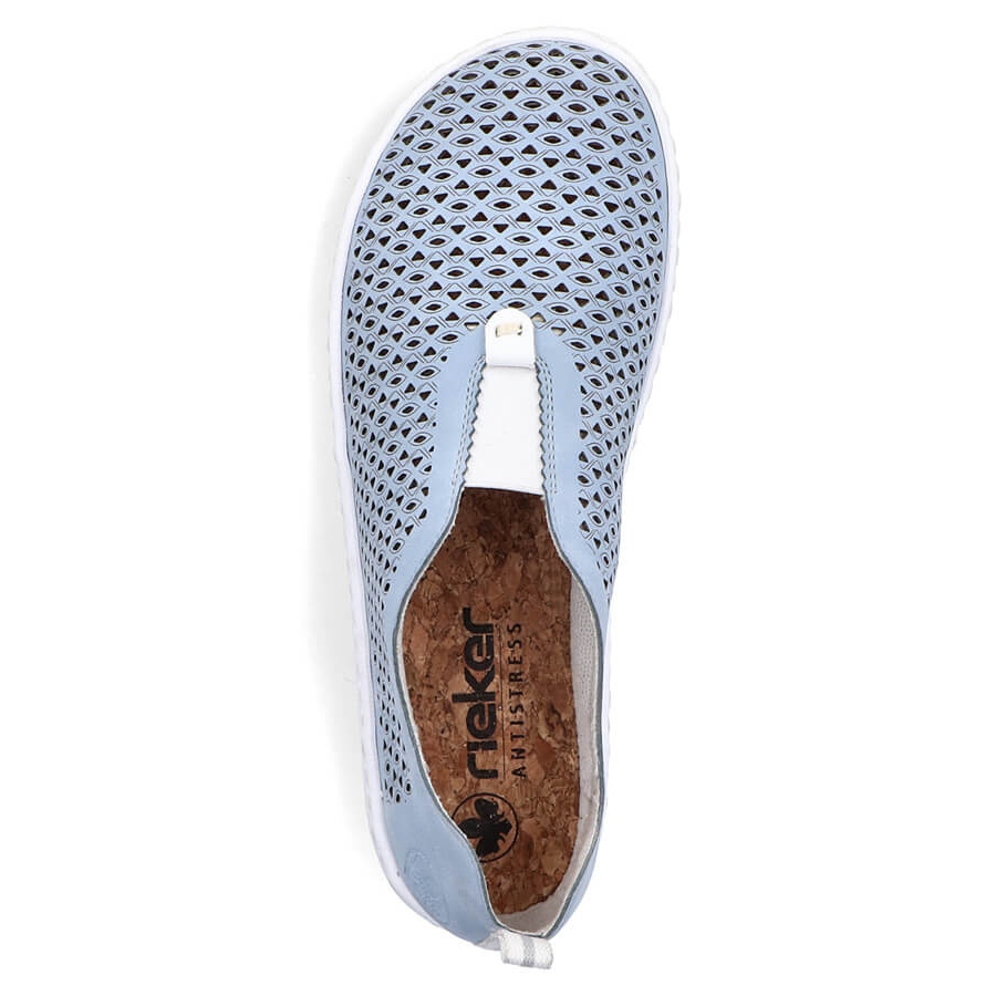 Részletek: Kényelmes női áttört bebújós cipő, kék Rieker 52866-10