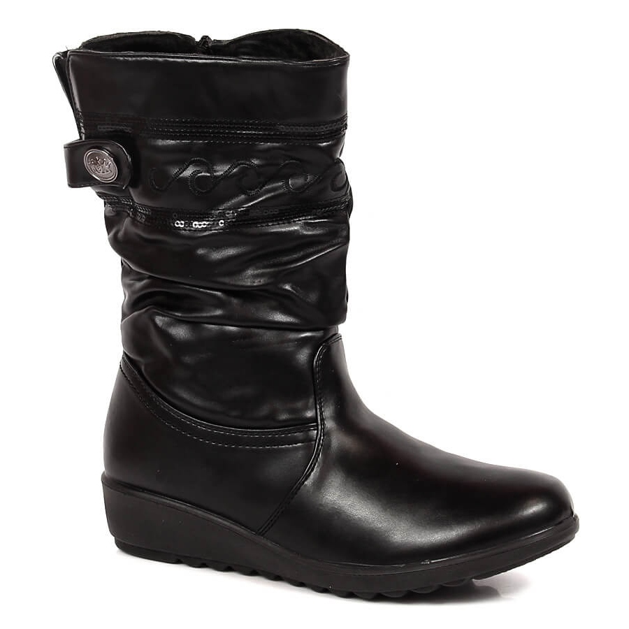 Részletek: Kényelmes női csizma, gyűrött, hőszigetelt fekete Sabatina