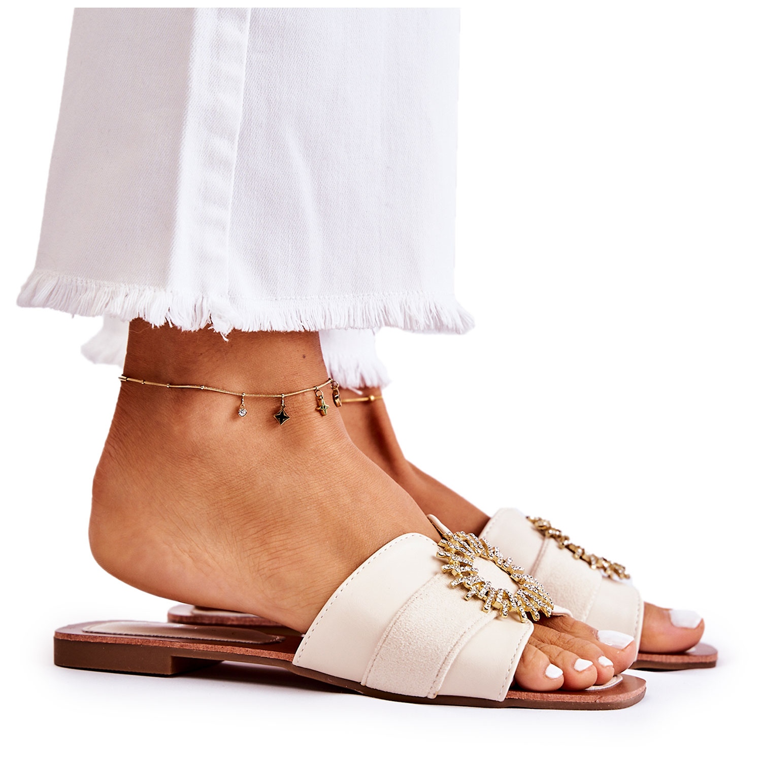 Részletek: PS1 Kényelmes női papucs világos bézs Ginera díszítéssel