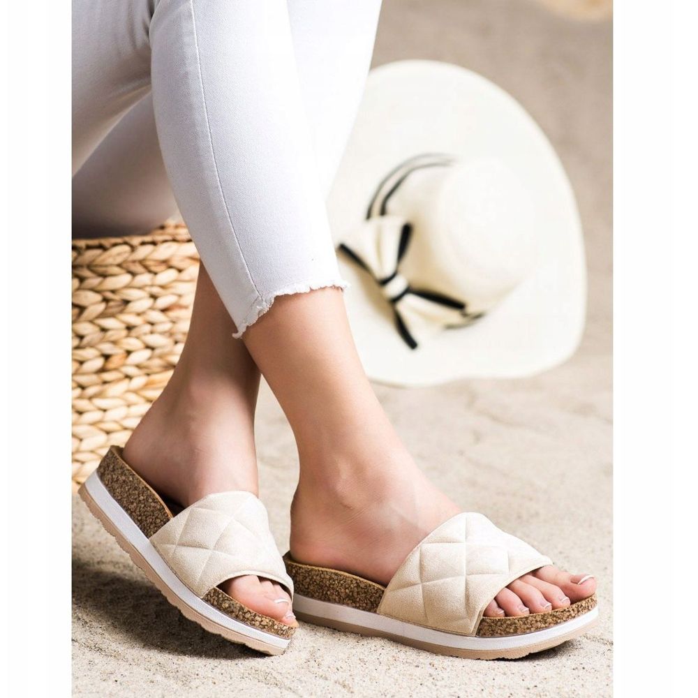 Részletek: Comer Kényelmes papucs a platformon bézs