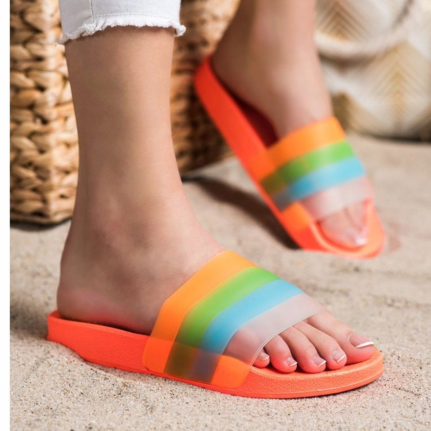 Bemutatjuk a Bona papucsokat intenzív narancssárga színes csíkokkal - tökéletes tavaszi és nyári napokra! Ezek az alkalmi papucsok tökéletes választás minden nő számára, aki mindennapi kényelmet és stílust keres.