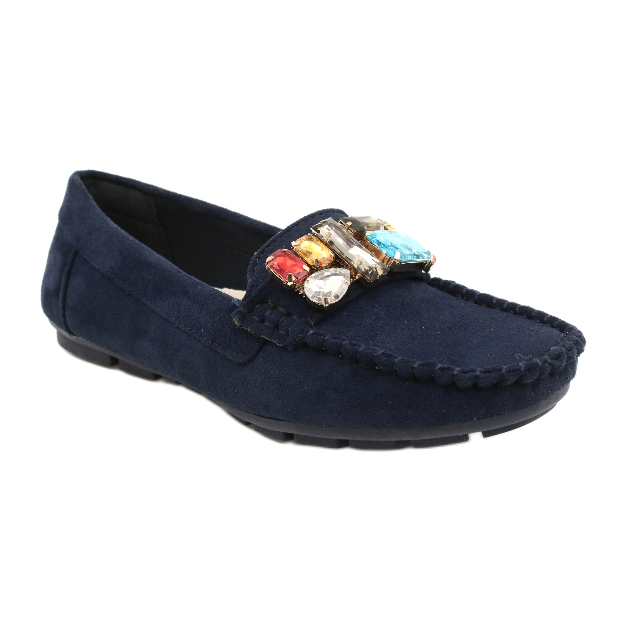 Evento Evento Kényelmes sötétkék velúr mokaszin kövekkel