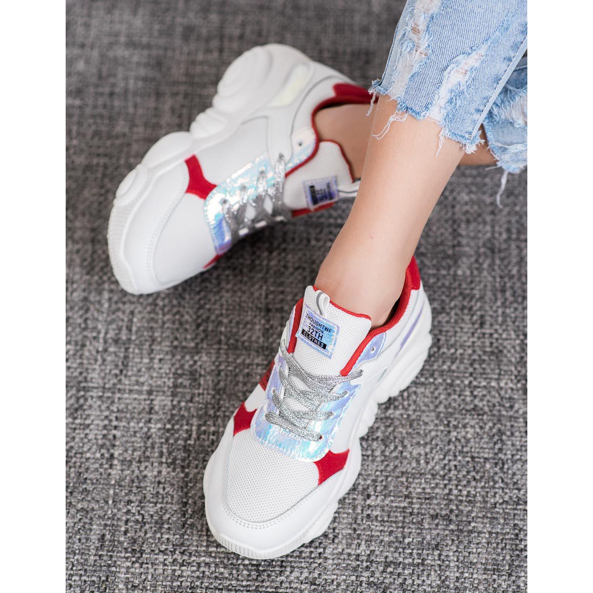A SHELOVET kényelmes sportcipő, fehér, kiváló választás azoknak a nőknek, akik értékelik a kényelmet és a divatos megjelenést. Ez a modell ötvözi a modern dizájnt a funkcionalitással, így tökéletes illeszkedést biztosít a különböző stílusokhoz. A színes foltok kiemelik a cipőket a többi közül, felkeltik a figyelmet, és eredetiséget adnak a ruháknak.