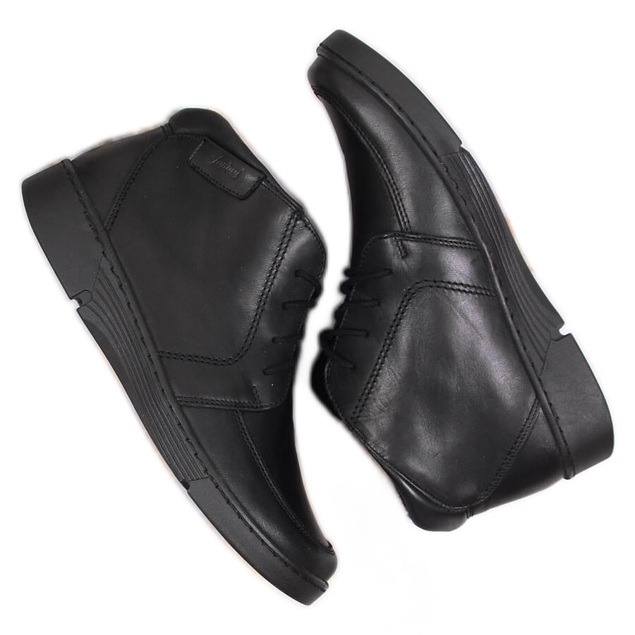 A fűzős rögzítésnek köszönhetően ezek a csizmák könnyen az Ön igényeihez igazíthatók, univerzális fekete színüknek köszönhetően pedig könnyedén kombinálható különféle stílusokkal - hétköznapi és elegánsabb egyaránt. A termék szabványos méretekben kapható, ami tökéletes illeszkedést tesz lehetővé a lábfejhez.