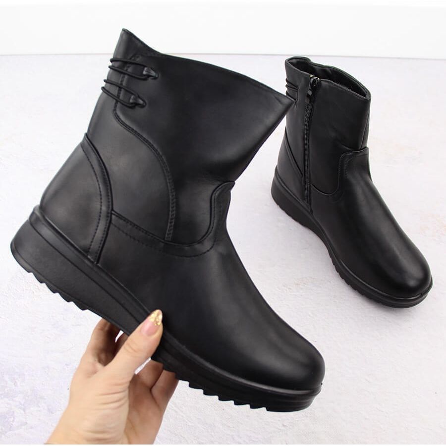 Részletek: Kényelmes, szigetelt fekete női csizma Potocki 90314