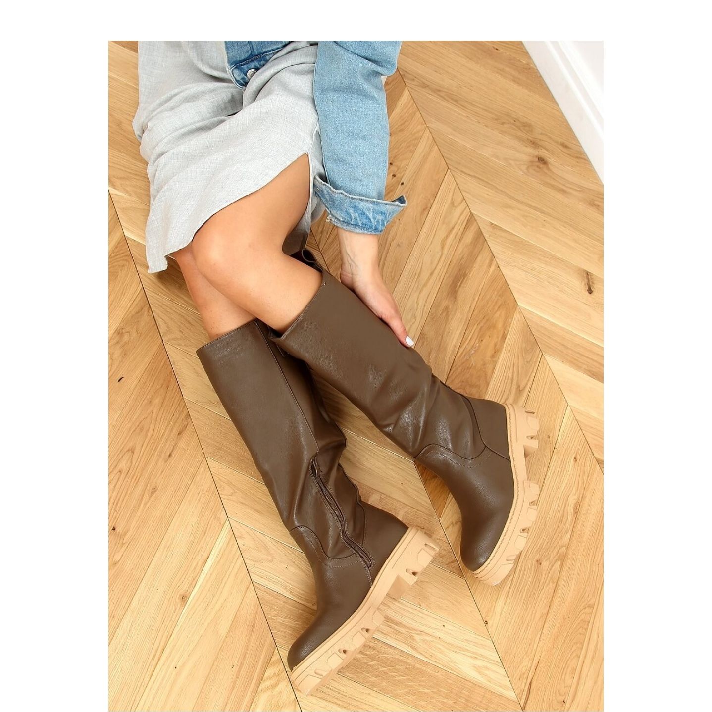 Részletek: Khaki QT21P Army Green csizma vastag talppal - Inello zöld
