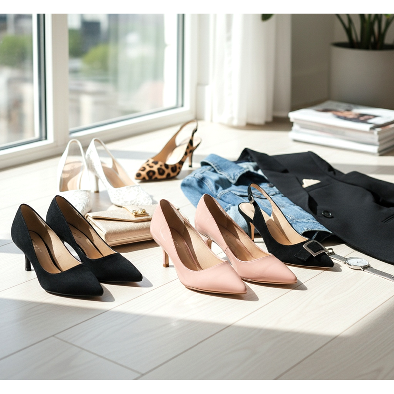 Az alacsony sarok - 3 és 5 cm között - elegendő ahhoz, hogy optikailag meghosszabbítsa a lábakat, és eleganciát adjon a testtartásnak, miközben teljesen kényelmes hosszú használat során. Egész nap sétálhatsz bennük lábfájdalom nélkül.