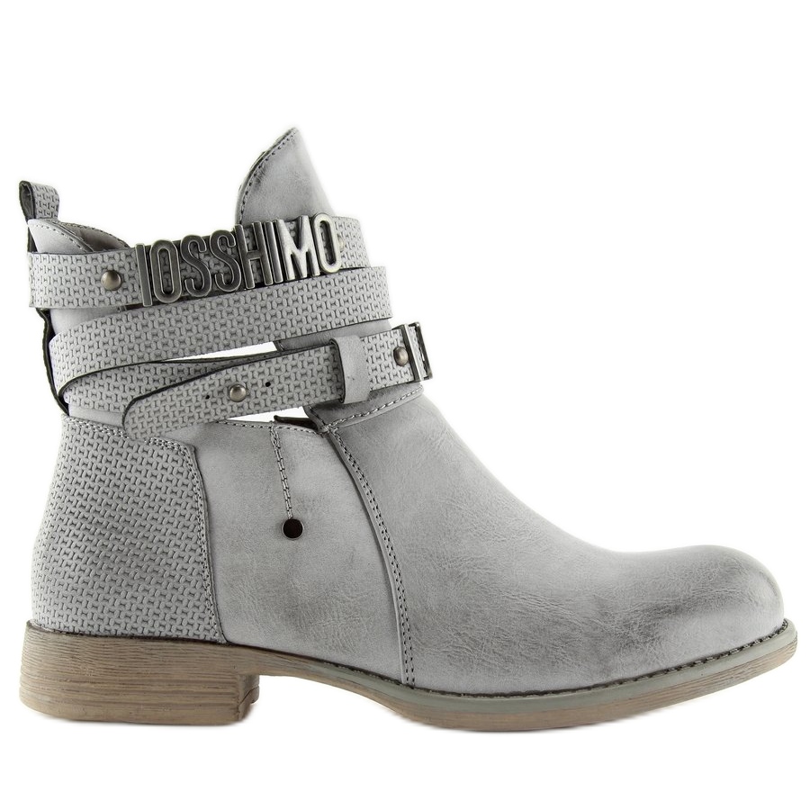 Fedezze fel a rendkívüli stílust és kényelmet a szürke 302-PA szürke kivágott bokacsizmák formájában! Ez a divatos női bokacsizma tökéletes választás azoknak a nőknek, akik szeretnének kitűnni a tömegből. A felsőrész oldalain lenyűgöző kivágások jellemzik őket, amelyek eredeti karaktert adnak nekik. A dombornyomott eco-bőr betétek és a boka körül feliratos divatos pántok ráadásul hangsúlyozzák egyedi stílusukat.