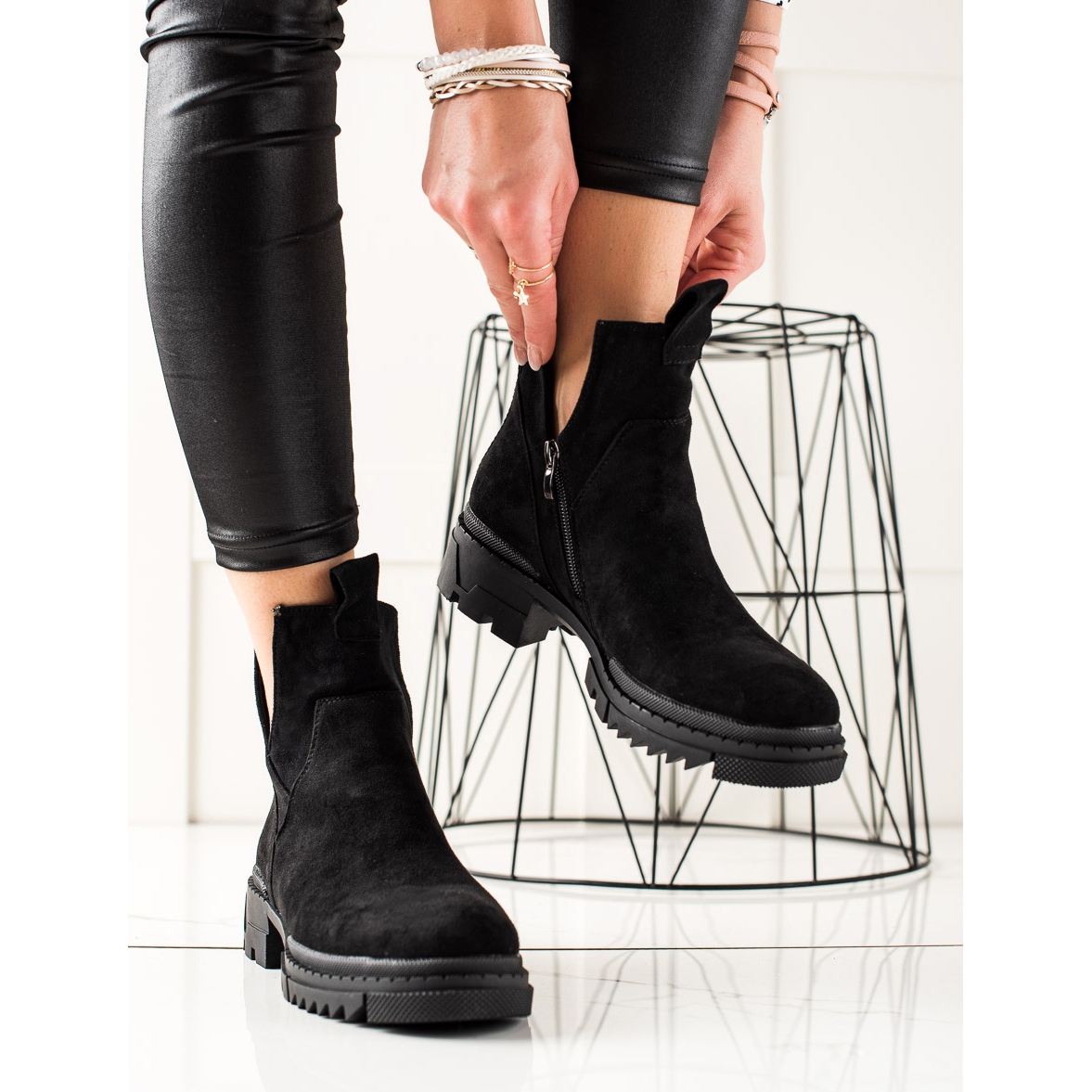 Fedezze fel a kivételes kényelmet és eleganciát a W. Potocki gyártó fekete velúr munkáscsizmáinak kivágásával. Ez a stílusos női bokacsizma tökéletes mindennapi ajánlat, amely sikeresen illeszkedik hétköznapi stílusához, tökéletes városi és hétköznapi stílushoz egyaránt.