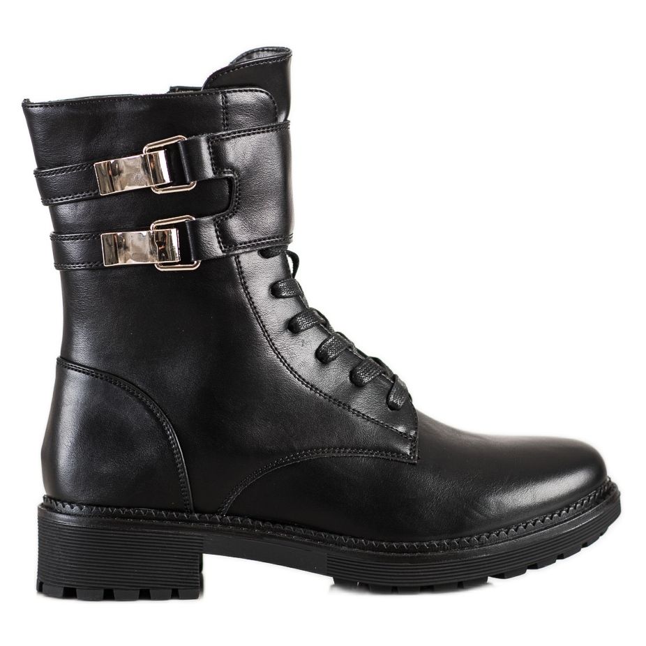 A kiváló minőségű ökológiai bőrből készült munkásokat nemcsak esztétikus megjelenésük, hanem funkcionalitásuk is jellemzi. A sarokpult beépített és merevített, ami biztosítja a stabilitást és a használat kényelmét. A futófelülettel ellátott műanyag talp garantálja a jó tapadást, így ideális választás szeles és téli napokra.