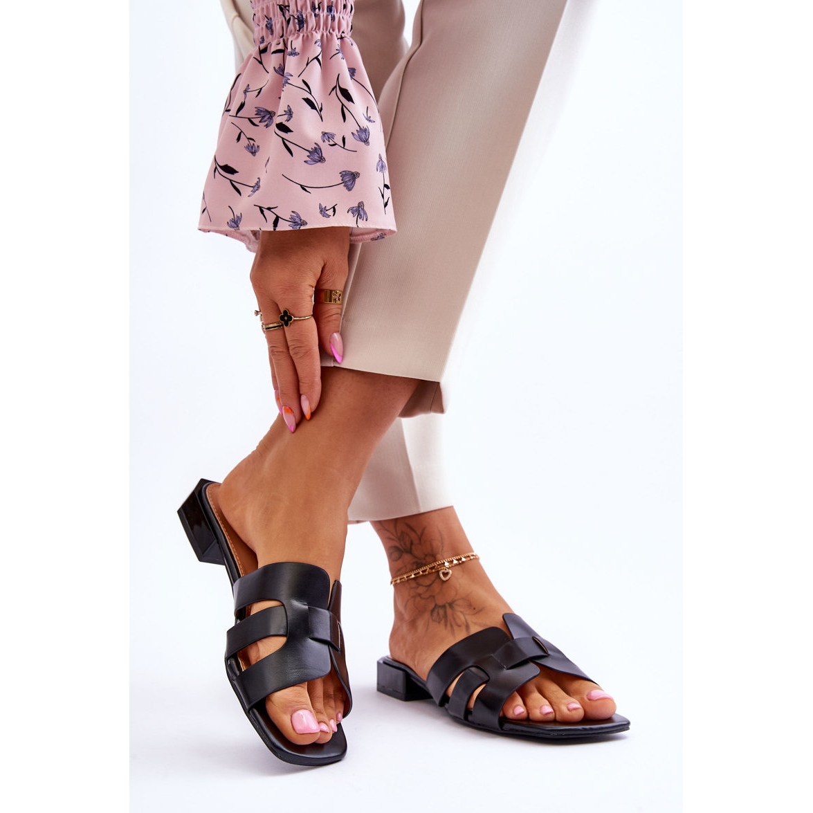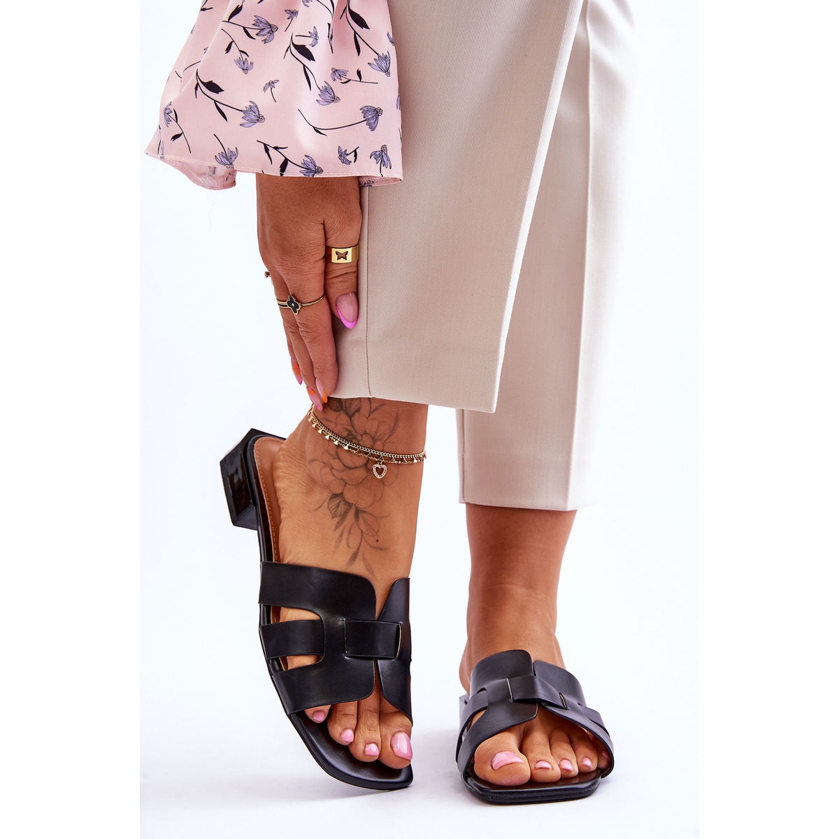 A járás közbeni stabilitásról a divatos, 2,5 cm-es lapos sarok gondoskodik, mely ideális hosszú sétákhoz és hosszú munkakörnyezeti viselethez egyaránt. A sarok optimális magasságú, így a papucsok kényelmes alternatívát jelentenek azok számára, akik a kényelmet és a trendeket egyaránt értékelik.