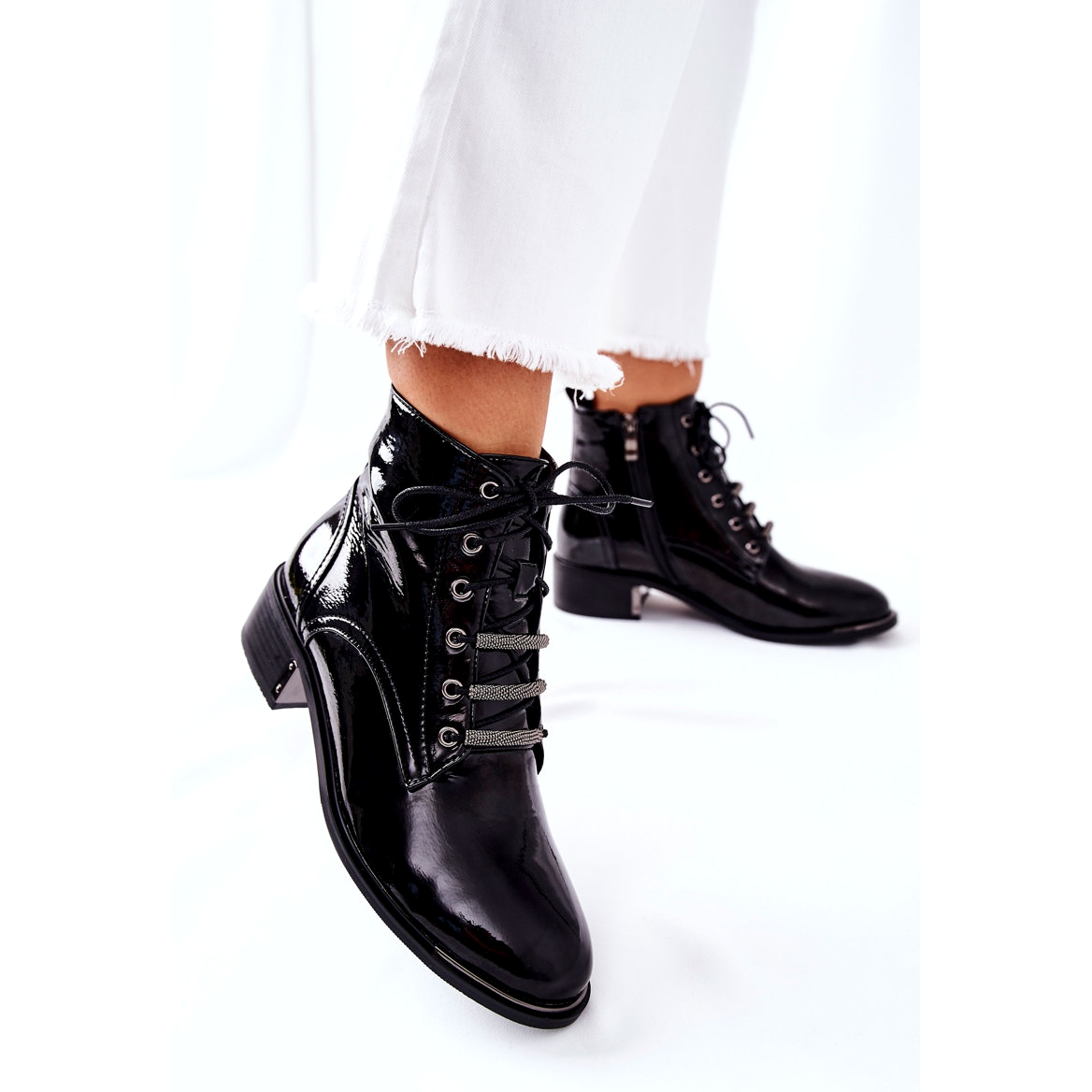 D&A D&A Klasszikus női meleg csizma lakkozott fekete tükröződéssel