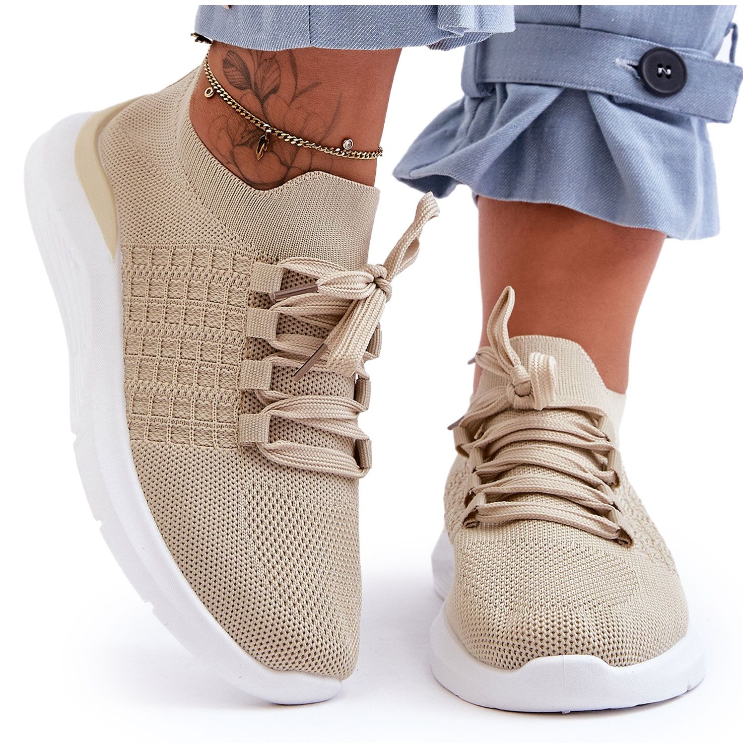 - A bézs szín könnyen kombinálható más semleges színekkel, és a fehér talp frissességet ad a megjelenéshez.