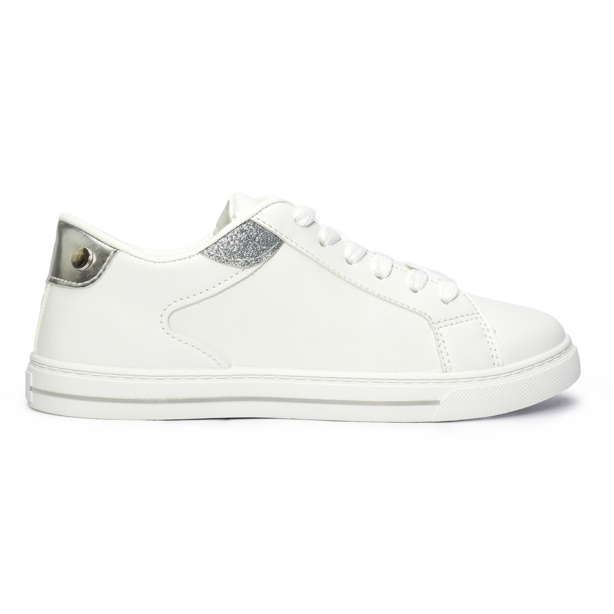 Fedezze fel a klasszikus női sportcipőt egy elegáns fehér árnyalatban, ezüst hozzáadásával, tökéletes minden nap. Ez a jó hírű márka által készített modell egyesíti a funkcionalitást és a divatos formatervezést, tökéletesen illeszkedve a sport divat virtuális világához.
