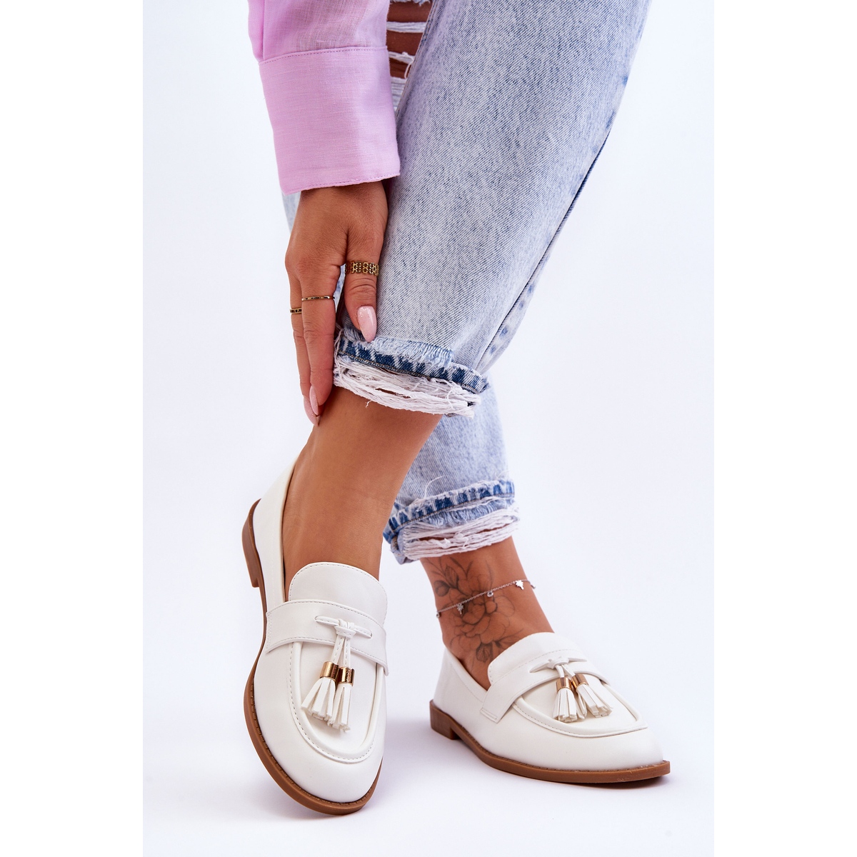 Inna marka Klasszikus rojtos bőrcipők White Camis fehér