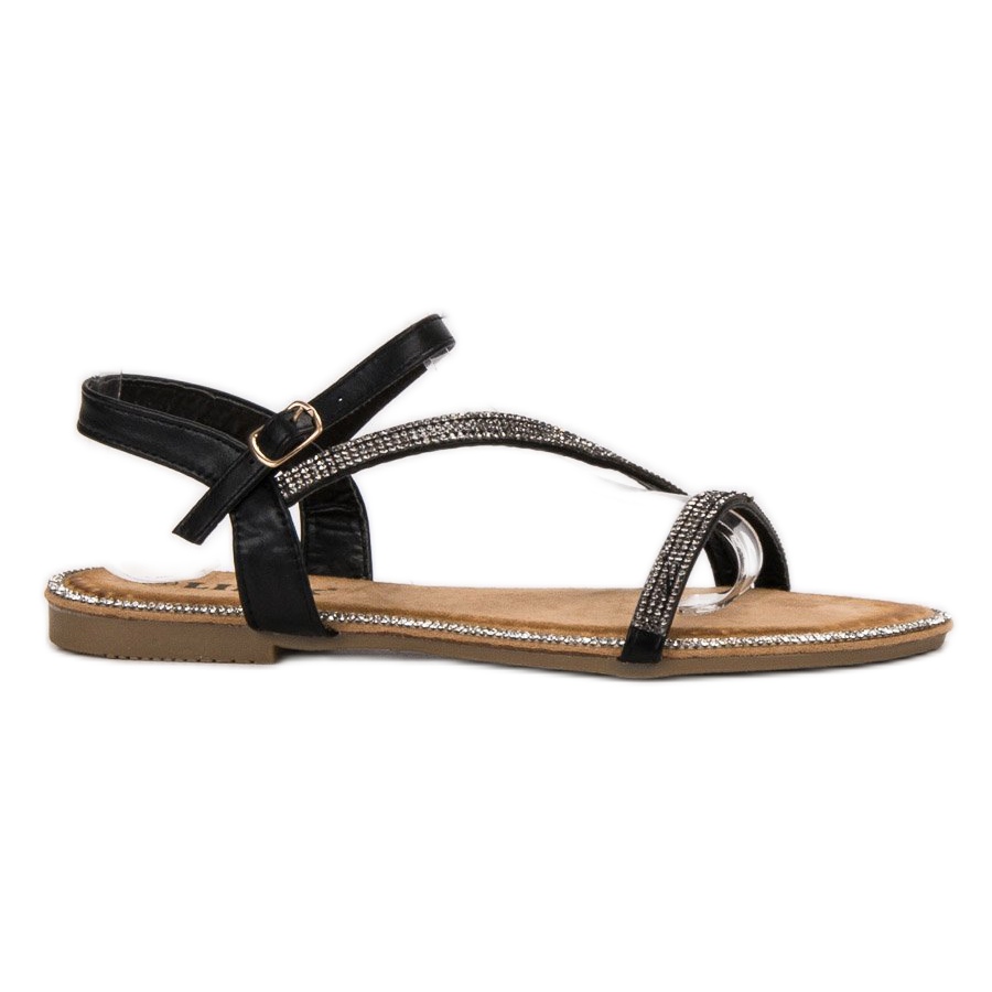 SHELOVET SHELOVET Klasszikus szandál köbös cirkóniummal fekete