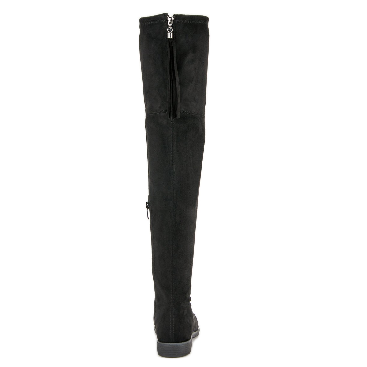 A csizmák felbújós záródású, további cipzárral, ami megkönnyíti a fel- és levételt. A lapos, 2,5 cm magas sarok kényelmes viseletet biztosít a hosszú viselés során, a kerek orr pedig finom varázst ad. A cipő belseje olyan anyaggal készült, amely garantálja a kényelmet viselése közben, a szintetikus talp pedig a tartósságot és a stabilitást.