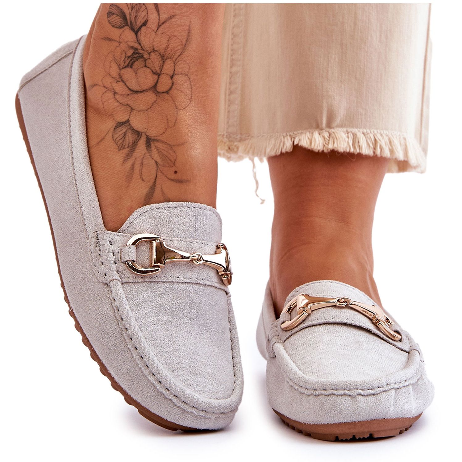 Elegáns és kényelmes női mokaszinok az FC3 Classic Suede mokaszinok szürke dekorációval, mely tökéletes kiegészítője lesz bármilyen stílusnak! A kiváló minőségű öko-velúrból készült mokaszinok kellemes tapintású anyagának és az ökobőr talpbetétnek köszönhetően kényelmes viseletet biztosítanak.