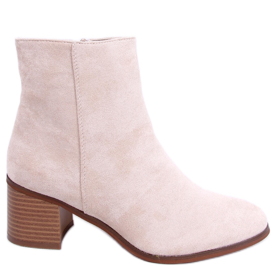 Natina Beige Boots - Klasszikus egy modern kiadásban. A finom bézs színű és sima, velúr textúra a modell tökéletesen illeszkedik mind a mindennapi, mind az elegánsabb stilizációkhoz. Az 5,5 cm magasságú széles oszlop biztosítja a viselkedés stabilitását és kényelmét, és a lekerekített orr hangsúlyozza a cipő időtlen jellegét.