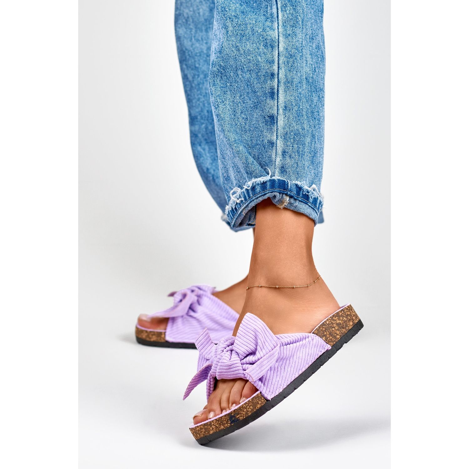Az ökológiai velúrból készült papucs nem csak jól néz ki, de környezetbarát is. Intenzív lila színük vonzza a figyelmet, a finom masni pedig nőies bájt kölcsönöz. A felcsúsztatható modell igazi élvezetté teszi a felöltést.