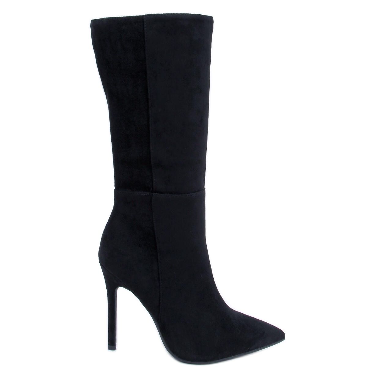 Inna marka Klasszikus velúr magas sarkú csizma Marissa Black fekete