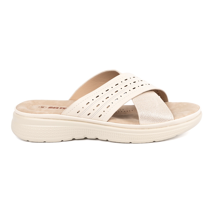 Fedezze fel a platformon lévő egyedi fényes bézs szárnyakat, amelyek egyesítik a kényelmet és a divatos megjelenést! Ezek az elegáns papucsok tökéletes választás azoknak a nőknek, akik a nyári napokban szeretnének élvezni a szabadságot. A papucsot egy nyitott sarok és egy nyitott kialakítás különbözteti meg, amely biztosítja a kiváló szellőztetést és a kényelmet is a legmelegebb napokon.