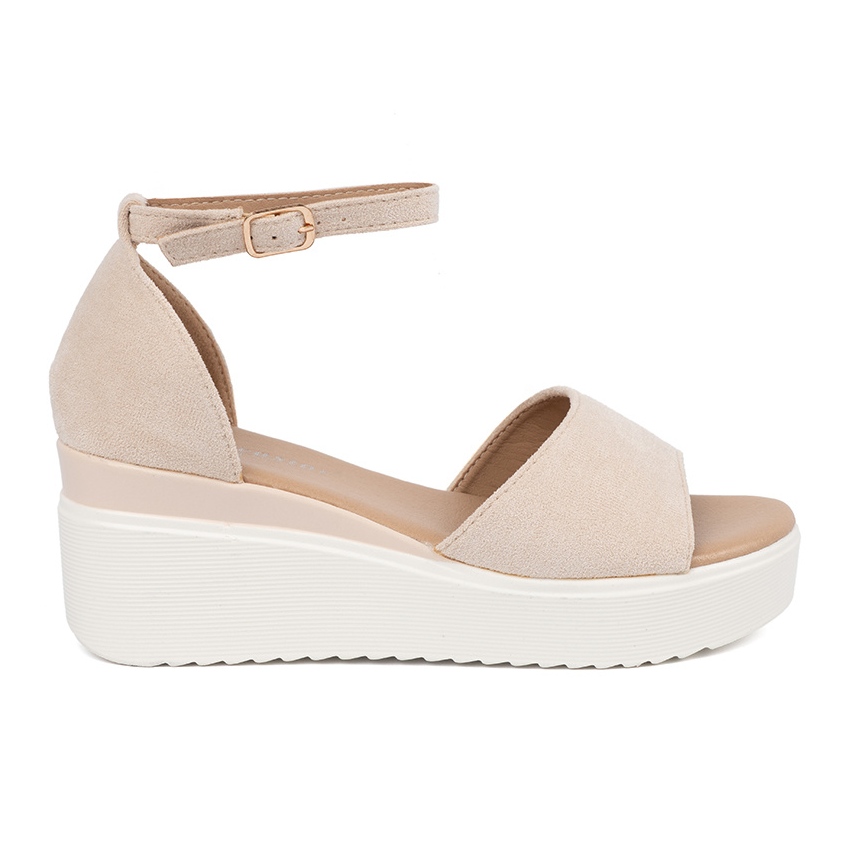 A szandált egy beépített sarok és egy nyitott orr jellemzi, amely biztosítja a stabilitást és a teljes mozgás szabadságát. Kiváló minőségű ökológiai velúr bőrből készül, nem csak vonzzák a szemét, hanem környezetbarát is. Az ökológiai bőr a tartósságot mutatja, és a luxust adja, és a talpbetétes anyag ugyanabban a technológiában is garantálja az örömét, hogy a nap folyamán is viselkedik.