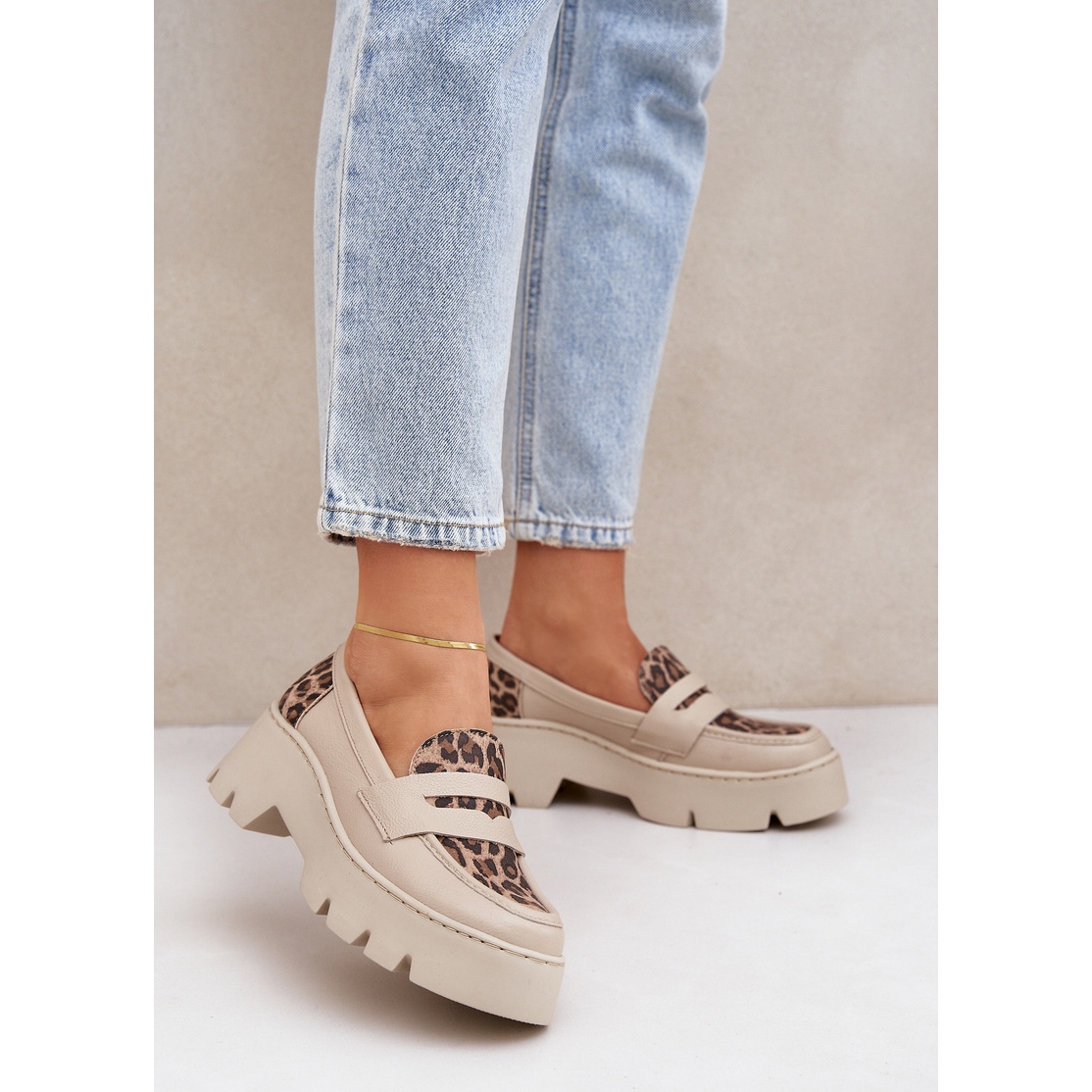 Fedezze fel az egyedi stílust és a kényelmet a könnyű bézs női mokaszinokkal! A legmagasabb minőségű természetes bőrből készült, ezek az elegáns cipők a klasszikusok és a modernitás tökéletes kombinációja. Az 5,5 cm magas lapos sarok magas és egy stabil platformnak (3,5 cm) köszönhetően kiváló támogatást és kényelmet nyújt egész nap.