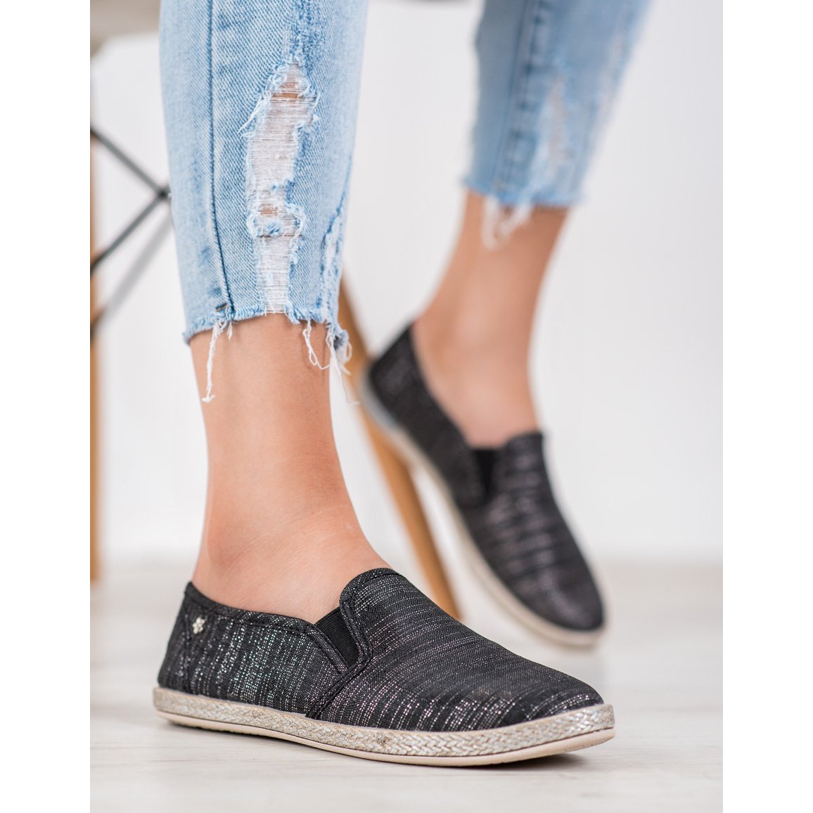 Fedezze fel a dizájner kényelmét és stílusát a Balada könnyű textilnadrágjával. Ezek a klasszikus női tornacipők elegáns fekete színben, finom ezüst csíkokkal a tökéletes hétköznapi megoldások, amelyek tökéletesen illeszkednek a divatos hétköznapi stílushoz.