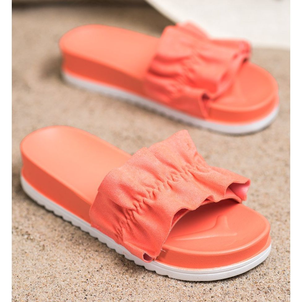 Részletek: SHELOVET Korall papucs a platformon narancs rózsaszín