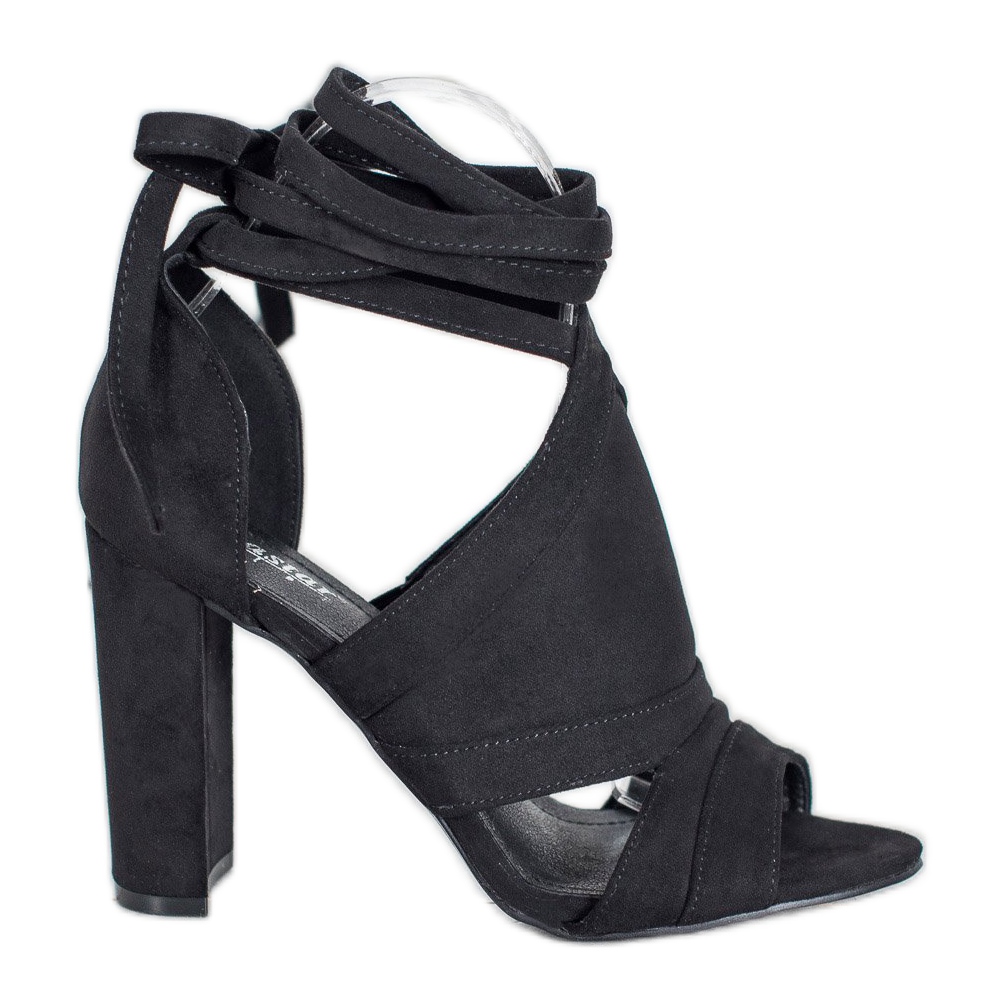 A kiváló minőségű ökológiai velúrból készült szandálok rendkívül lenyűgözőek. Elkeskenyedő végük divatos karaktert kölcsönöz nekik, a bokát körülölelő nyakkendő pedig nem csak a tökéletes illeszkedést, de a viselési kényelmet is biztosítja. Az átgondolt kialakítással és a kiépített, merevített sarokkal ezek a szandálok stabilitást garantálnak, ami 10 cm magas sarok mellett döntő.