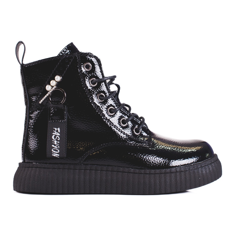 SHELOVET Lakkbőr lánycsizmák a Shelovet platformon fekete