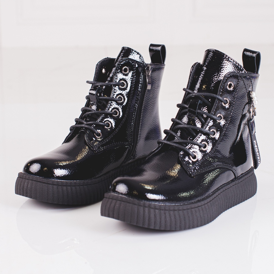 Részletek: Lakkbőr lánycsizmák a Shelovet platformon fekete