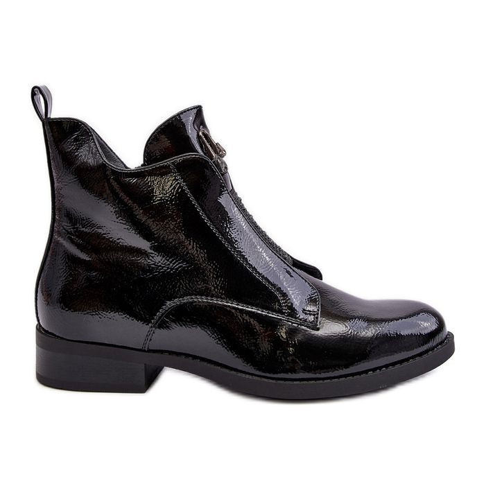 Részletek: Lakkbőr női lapos sarkú csizma, meleg fekete S.Barski HY75-120 fekete