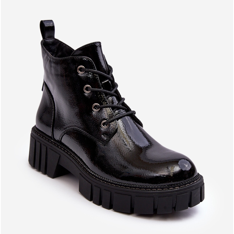 Sergio Leone Sergio Leone Lakkbőr szigetelt fűzős bokacsizma Fekete Bjorg