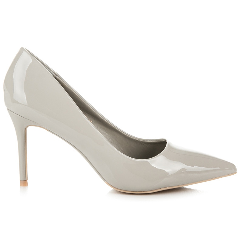 A Vices tűsarkú cipők felcsúsztathatóak, így hihetetlenül praktikusak és könnyen felvehetők. Monokróm, szürke színüknek köszönhetően tökéletesen illeszkednek a különböző stílusokhoz, a lakkozott felület pedig elegánsságot és eleganciát ad.