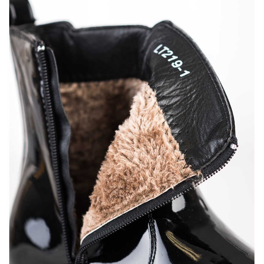 Részletek: SHELOVET Lakkozott csizma szőrmével fekete