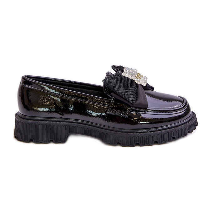 Részletek: Vinceza Lakkozott Eco bőr lány mokaszinok masnival, fekete Avallesa