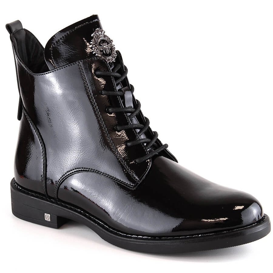Részletek: Lakkozott fűzős és cipzáras fekete csizma Potocki SZ12179