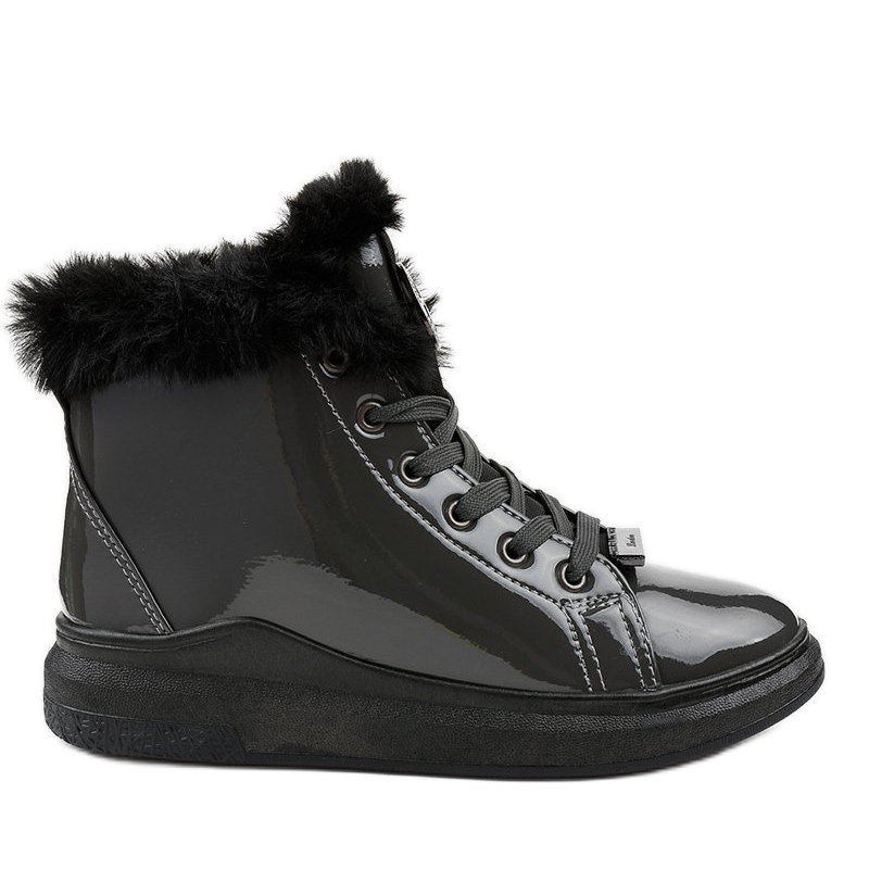 Részletek: Lakkozott meleg szürke cipők TL135-7