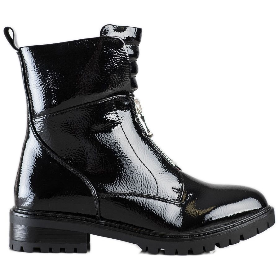 Fedezze fel a rendkívüli stílust és kényelmet a fekete Erynn Lacquered Zipper Workers segítségével. Ez az elegáns, 100% ökobőrből készült bokacsizma tökéletes választás az őszi/téli szezon hidegebb napjaira. A szigetelésnek és a beépített, merevített saroknak köszönhetően lábai mindig melegek és védettek lesznek.