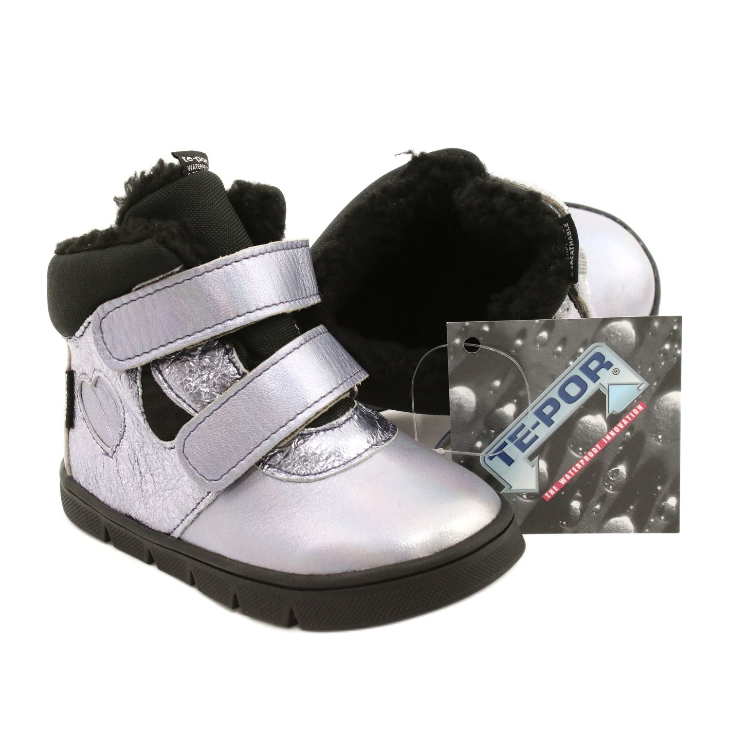 Meleg és kényelmes téli csizma lányok számára, természetes bőrből, anyaggal kombinálva, vízálló TE-POR membránnal felszerelve. A modell védelmet nyújt a nedvesség és a hideg ellen, és a gyakorlati tépőzáras rögzítőelem megkönnyíti a gyors felhelyezést és az illesztést. A puha szőrmel szigetelt belső terek, amelyek megmerevített sarkával stabilizálják a bokát, és a nem -SLIP talp garantálja a jó tapadást a csúszós felületeken.