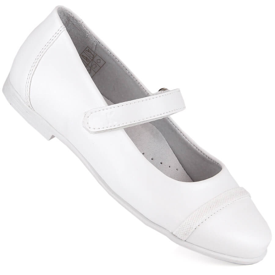 Részletek: Lányok áldozáshoz tépőzáras fehér Kornecki 6492 balerinák
