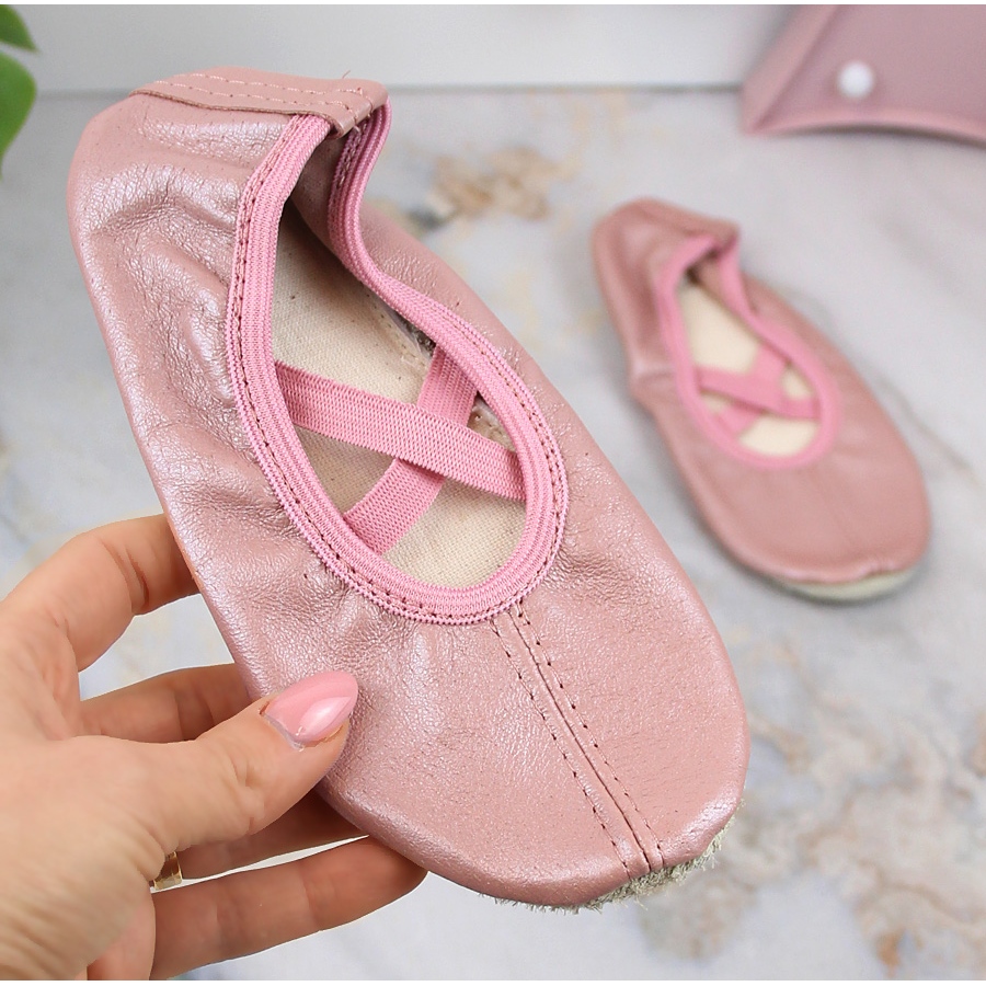 Részletek: Lányok bőr balettcipő tánchoz gumiszalaggal, rózsaszín Nazo NB02